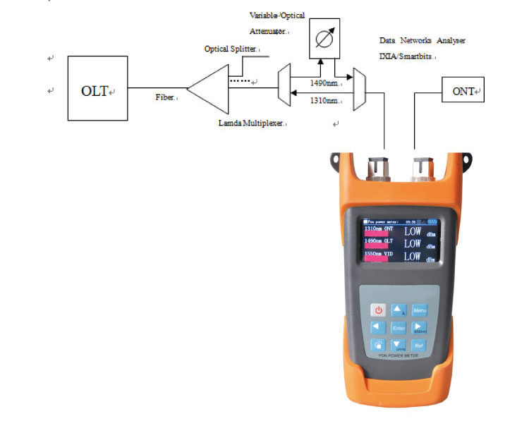 • 3. Testez simultanément les longueurs d'onde 1310, 1490 et 1550 dans le système PON