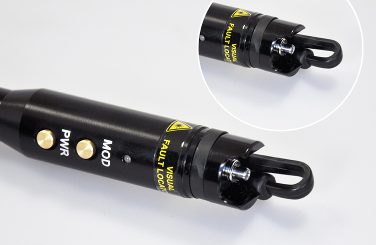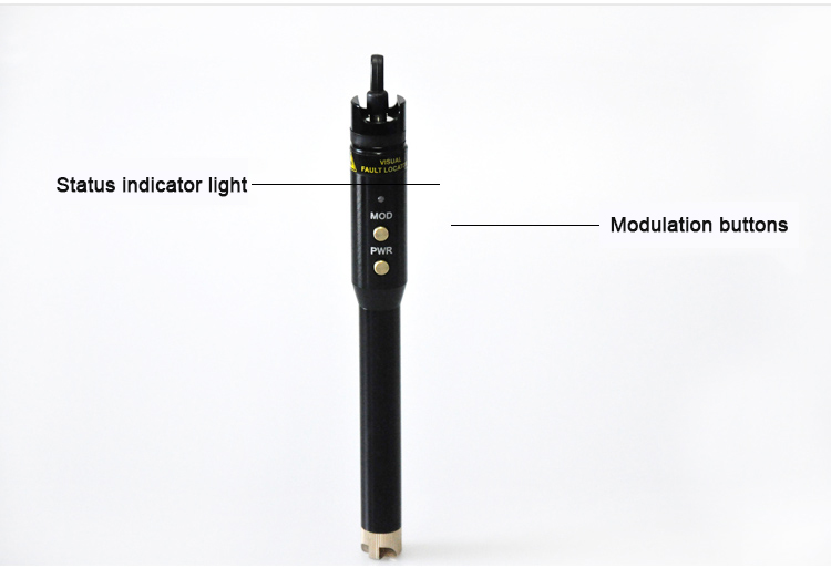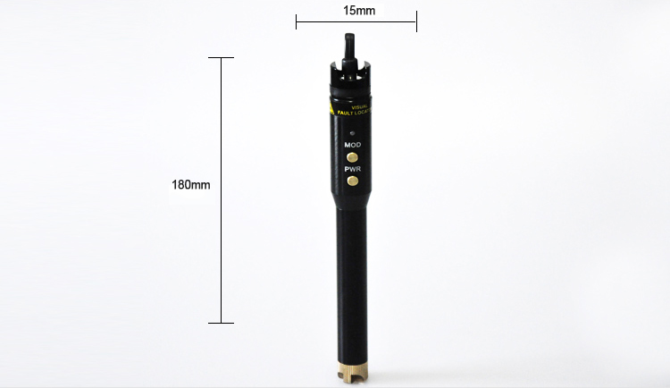 Localisateur Visuel de Défaut - Style Stylo  VFL-105P est un outil de test compact mais puissant pour le câble à fibre optique, avec une puissance de sortie jusqu'à 10mW, qui peut être utilisé pour localiser des pliages et des ruptures pointus dans les fibres gainées ou nues de plus de 8-10km. Il peut également être appliqué pour identifier les connecteurs dans les panneaux de brassage et identifier les fibres lors de l'opération d'épissure. Choisissez le mode de sortie d'onde continue pour une illumination de défaut stable ou le mode de sortie flashing pour une localisation de défaut plus facile.